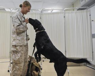 | Keywords: K9 patient 140113-N-LE393-005.jpg en U S Marine Corps Cpl Johanna Robbins a military working dog handler with the 13th Marine Expeditionary Unit law enforcement detachment plays with Quick a black lab explosives search dog before a veterinary procedure to clean out his ear canals Quick had earwax dirt and a yeast infection in his ears U S Navy photo by Mass Communication Specialist 1st Class Eric Dietrich/Released 2014-01-13 Petty Officer 1st Class Eric Dietrich https //www dvidshub net/image/1150191 140113-N-LE393-005 2014-01-14 08 00 CAMP LEMONNIER DJ PD-USGov-Military-Navy 13th Marine Expeditionary Unit Camp Lemonnier Images from DoD uploaded by Fæ |