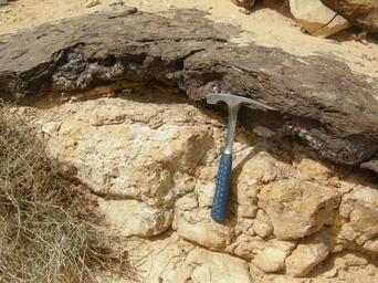 | Keywords: K Laterite.JPG Cretaceous laterite in Makhtesh Gadol Israel It sits on top of a Jurassic limestone and is in turn covered by Cretaceous sandstone It was formed by a humid Cretaceous forest Own Wilson44691; Mark A Wilson Department of Geology The College of Wooster http //www3 wooster edu/geology/MWilson html Laterite Ecology Makhteshim Geological hammers Taken with Nikon Coolpix P1 Cretaceous geology Jurassic geology | ||||