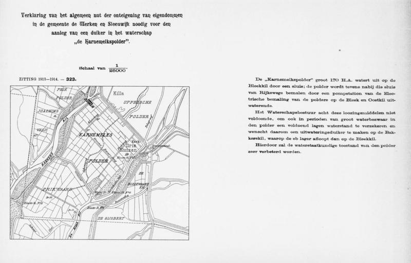 | Keywords: KAARTEN SGD - Verklaring van het algemeen nut der onteigening van eigendommen in de gemeente De Werken en Sleeuwijk noodig voor den aanleg van een duiker in het waterschap "de Karnemelkspolder".jpeg  accession number en The individual creators of this map are unknown it was commissioned by the House of Representatives of the Netherlands De Karnemelkspolder groot 170 ha watert uit op de Bleekkil door een sluis; de polder wordt tevens nabij die sluis van rijkswege bemalen door een pompstation van de electrische bemaling van de polders op de Bleek en Oostkil uitwaterende help warp This map was digitized by the Institution Koninklijke Bibliotheek ; Koninklijke Bibliotheek 51 7666666666667 Werken en Sleeuwijk De 4 90833333333333 map date 1914 grond-onteigening systemen en bouwwerken t b v afwatering other fields other versions CC0 print date 1914 This map was commissioned and published by the Institution Tweede Kamer 1 25 000 This image in context http //www statengeneraaldigitaal nl/document id sgd mpeg21 19131914 0001068 pagina 2; Tweede Kamer KAARTEN SGD - Verklaring van het algemeen nut der onteigening van eigendommen in de gemeente De Werken en Sleeuwijk noodig voor den aanleg van een duiker in het waterschap de Karnemelkspolder wikidata location wikidata title Uploaded with GWToolset KAARTEN SGD - Verklaring van het algemeen nut der onteigening van eigendommen in de gemeente De Werken en Sleeuwijk noodig voor den aanleg van een duiker in het waterschap de Karnemelkspolder http //resolver kb nl/resolve urn sgd mpeg21 19131914 0001068 0002 image |