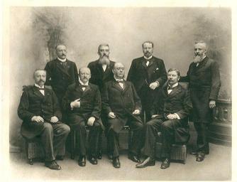 | Keywords: Kabinet Pierson.jpg Het kabinet Pierson Achterste rij van links naar rechts Eland De Beaufort Lely en Cort van der Linden Op de voorste rij van links naar rechts Röell Goeman Borgesius Pierson en Cremer http //www dewijkwebsite nl/wijkverhalen/straatnamen-minister-elandstraat html dewijkwebsite nl ~ 1898 onbekend zie ook http //toolserver org/~multichill/SpaarnestadDeeplink php trefwoord SFA001017017 PD-old Cabinet Pierson Willem Hendrik de Beaufort 1845-1918 Kornelis Eland Cornelis Lely Pieter Cort van der Linden Jacob Alexander Röell Hendrik Goeman Borgesius Jacob Theodoor Cremer Nicolaas Pierson |