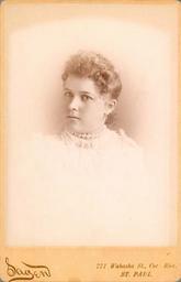 | Keywords: Kabinettfotografi, Norskamerikanere, Norsk Folkemuseum NF.06770-024, bilde 1.jpg nb Kabinettfotografi av ukjent kvinne Norskamerikaner Fotografiet er kommet inn i forbindelse med Jeg fant jeg fant innsamlingen i 1962 Serien er fra norsk-amerikansk miljø Enkelte av fotografene har norskliknende navn en Cabinet card unknown female Norwegian American 1890 NF NF 06770-024 kabinettfotografi-norsk-amerikanere-kvinne-i Sagen Minnesota St Paul USA / Norsk Folkemuseum <gallery> File Kabinettfotografi Norskamerikanere Norsk Folkemuseum NF 06770-024 bilde 2 jpg </gallery> PD-old Cabinet cards Black and white photographic portraits of women 1890s portrait photographs Women facing left and looking at viewer Norwegian Americans |
