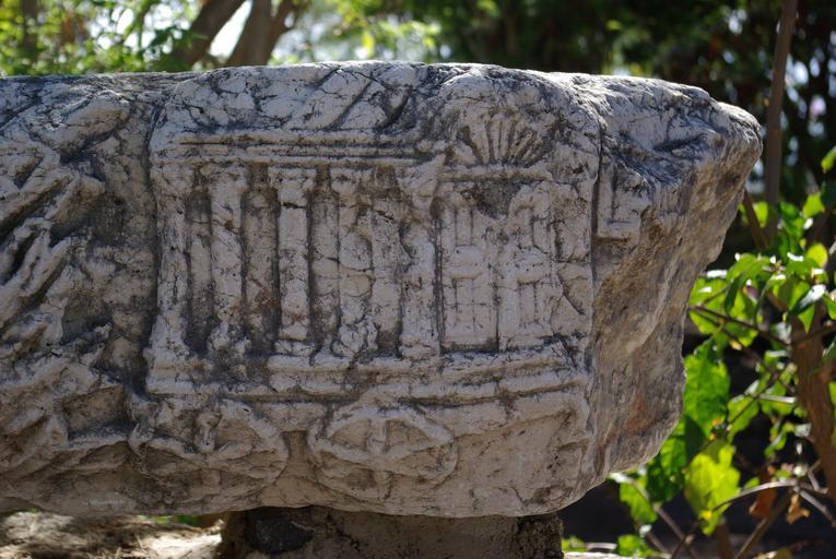 Keywords: Kafarnaum BW 13.JPG 32 52 50 02 N 35 34 29 27 E alt 197 83_source exif_heading en Israel Capernaum Ark of the Covenant Israël - Capharnaüm - cette pierre est ornée d'un motif représentant l'Arche de l'Alliance sur un chariot de Kafarnaum own Berthold Werner 2008-11-06 <gallery> File תמונה 983 jpg File Kafarnaum BW 13 JPG File Israel Capernaum Ark of the Covenant jpg </gallery> Ark of the Covenant Capernaum Taken with Pentax K10D Photographs by User Berthold Werner/Israel Palestina Ark of the Covenant |