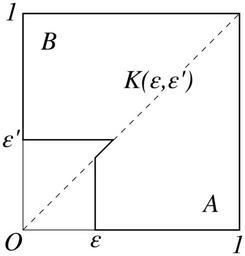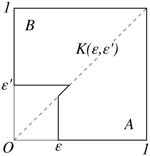 Keywords: KaisekiGairon-346-1.svg en A domain K \epsilon \epsilon' is the union of the trapezoids made by cutting off small rectangles from the origin side of the traiangles A and B 高 貞治:解析概論 改訂第三版[軽装版] p 346 つ目の図 tesigana 2011-01-24 PD-Japan 解析概論