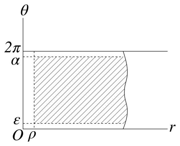 Keywords: KaisekiGairon-356-1.svg en An integral domain r> 0 0< \theta< 2\pi in the r\theta polar coordinate system 高 貞治:解析概論 改訂第三版[軽装版] p 356 つ目の図 tesigana 2011-02-03 PD-Japan 解析概論