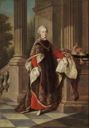 | Keywords: Kaiser Leopold II in ritteroden vom Goldenen Vlies.jpg Artwork de Kaiser Leopold II in ritteroden vom Goldenen Vlies century 18 Oil on canvas cm 115 80 Institution Versailles Petit appartement de la reine https //www flickr com/photos/thelostgallery/sets/72157627344138457/detail/ page 22 000PE007492 other versions PD-old-100 The Imperial Family of Austria serie attributed to Anton von Maron Versailles Portrait paintings of Leopold II Holy Roman Emperor 1772c 18th-century oil portraits of standing men at full length in ceremonial robes 1772c Ceremonial robes of the Order of the Golden Fleece 1772c Checkered floors in portrait paintings 1772c Ermine clothing in art Portrait paintings of men with crowns on cushions 1772c Portrait paintings of standing men with arms resting on tables 1772c |