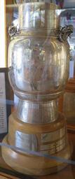 Keywords: Kalakaua Cup, c. 1889, Gorham Manufacturing Company.JPG en Kalakaua Cup c 1889 Gorham Manufacturing Company photographed in the Waikiki Yacht Club own Wmpearl photo 2014 Trophies of sailing Cup trophies Gorham silver Objects associated with Kalākaua Cc-zero