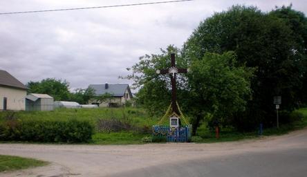 Keywords: Kalno gatvė, Uosių sodai.JPG Kryžius Kalno gatvėje Uosių/Rokantiškių sodai Vilnius own 2014-05-29 Šarūnas Šimkus Wooden crosses in Lithuania Streets in Vilnius