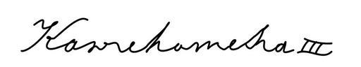| Keywords: Kamehameha III 1839 signature.svg en Signature of Kamehameha III from a document in 1839 in which Hoapili leased land to William Sumner Kamehameha_III_1839_signature jpg 2011-08-22 15 15 UTC Kamehameha_III_1839_signature jpg Kamehameha III derivative work Malyszkz <span class signature-talk >talk</span> Zwektoryzowano Krzysztof ZajÄ…czkowski malyszkz Kamehameha_III_1839_signature jpg PD-old-100 Original upload log This image is a derivative work of the following images File Kamehameha_III_1839_signature jpg licensed with PD-old-100 2011-07-12T07 51 35Z KAVEBEAR 300x56 12402 Bytes <nowiki>improve</nowiki> 2011-07-12T07 30 26Z KAVEBEAR 300x45 12274 Bytes <nowiki> en Signature of Kamehameha III from a document in 1839 in which Hoapili leased land to William Sumner Hawaii State Archives en </nowiki> Uploaded with derivativeFX Signatures of Hawaiian monarchs Kamehameha III Signature |