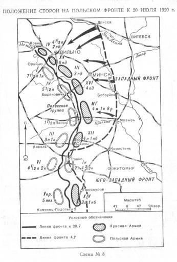 | Keywords: Kamenev map 8.jpg en Polish-Soviet front 20 07 1920 ru Положение сто он на польском ф онте к 20 июля 1920 г С С Каменев Бо ьба с белой Польшей Военный вестник 1922 N12 ст 7-17 Записки о г ажданской войне и военном ст оительстве Воениздат 1963 С С Каменев 1922 PD-old Maps of the Polish-Soviet War |