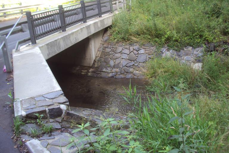 Keywords: Kamenický potok a.JPG cs Potok podtéká silnici směr Nové Zákupy a Velenice own Zákupák 2014-07-14 Kamenický potok Svitávka tributary Bridges in Zákupy