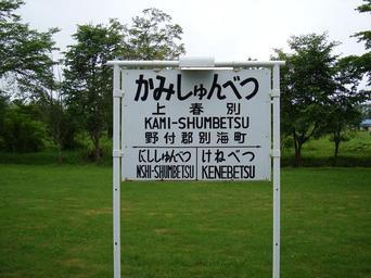 | Keywords: Kamishumbetsu station01.JPG Kami-shumbetsu Station Running in board on Bekkai railway Memorial park Disused train stations on Shibetsu Line 上春別駅 駅名標 別海町鉄道記念公 2009-07-18 Own <font color 000 >221 20</font> <font color 000 >talk</font> Stations of Shibetsu Line Train station signs of Japanese National Railways Betsukai Hokkaido Files by User 221 20/Sony DSC-W300 |