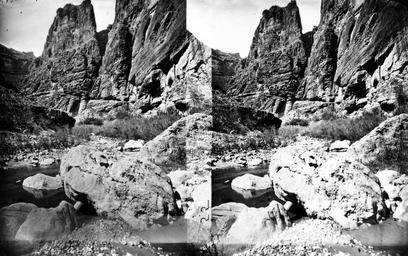 | Keywords: stereoscopic stereophotography stereophotographs historical usgs history geology mapping black and white blackandwhite bnw stereograph blackandwhite monochrome outdoor landscape rock formation rock black and white Kanab Canyon, near Pinnacle (from downstream). Arizona.n.d. Kanab Canyon, near Pinnacle (from downstream). Arizona.n.d. |