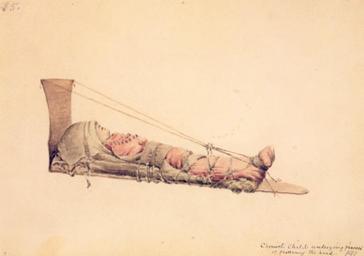 | Keywords: Kane Flathead Child.jpg Artwork title Chinook child undergoing process of flattening the head Enfant Chinook subissant le processus d'applatissement de la tête Creator Paul Kane 1847 Watercolour on paper cm 12 4 17 8 institution Stark Museum of Art Orange Texas U S A Field sketch showing a Chinookan child Scanned from Eaton D ; Urbanek S Paul Kane's Great Nor-West University of British Columbia Press; Vancouver 1995 ISBN 0-774-80538-2 Other versions <gallery> Image Kane Caw Wacham jpg </gallery> PD-old-100 Paul Kane Confederated Salish and Kootenai Tribes of the Flathead Nation 1847 paintings Watercolor paintings of children Cradle boards Stark Museum of Art |