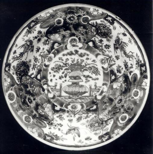 Keywords: Kang-He period Plate.jpg Chinese Plate Talerz chiński Tsing Dynasty - Kang-He Period 1661-1722 century 17 Porcelain Catalogue of stolen and missing cultural achievements / comp Jan Świeczyński; Ośrodek Informacyjno-Koordynacyjny Ochrony Obiektów Muzealnych Warsaw 1988 Editor Wojciech Jaskulski Piotr Ogrodzki See also http //kolekcje mkidn gov pl/katalog/podglad ID 11511 Department of National Heritage Wartime losses an official webpage of Polish Ministry of Culture Art and National Heritage PD-Polish Anonymous-EU Ceramics lost in Poland during World War II Porcelains of the Qing Dynasty Porcelain plates |