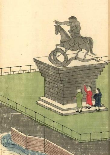 | Keywords: Kankai ibun peter.jpg Иллюст ация из 11-го свитка «Канкай ибун» памятник Пет у I в Санкт-Пете бу ге « едный всадник» Памятник на исован японским художником со слов доп ошенных мо яков п ибитых ко аблек ушением к бе егам России и че ез много лет возв ащённых в Японию оссийским посольством во главе с П Резановым http //milko lenin ru/Milko/Kankai_Ibun/kankai_ibun_peter jpg XVIII-XIX century author PD-old Kankai Ibun The Bronze Horseman in art Art works uploaded by Andrew Butko from various sources less 1000 px on long side |