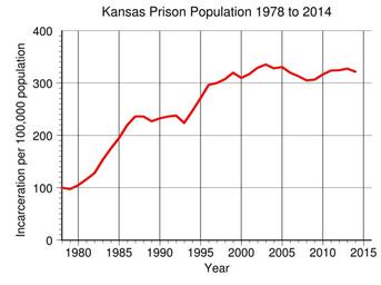 | Keywords: Kansas Prison Population.svg en Kansas prison incarceration rate per 100 000 population from 1978 to 2014 Data from http //www bjs gov/index cfm ty nps BJS 2016-05-11 own Delphi234 other versions current annually Generated with Wikimedia SVG Chart SVG Chart/box cc-zero Prisons in Kansas Imprisonment and detention rates in the United States |