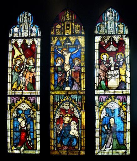 | Keywords: Kapellenfenster Köln um 1340 KGM paste.JPG Dreiteiliges Kapellenfenster; Köln um 1340 English Medieval glass from Cologne Cathedral showing Crucifixion and Virgin in Majesty framed by Annunciation Presentation at the temple and two donors <br />Kunstgewerbemuseum Berlin Leihgabe Wikimedia Commons 2009 User FA2010 Kapellenfenster_Köln_um_1340_KGM jpg The present version has a photo of the upper right section cut and pasted over the top to cover section badly affected by reflected light Some streaky light has been darkened in the lower right panel <gallery> File Kapellenfenster Köln um 1340 KGM Darbringung jpg File Kapellenfenster Köln um 1340 KGM Verkündigung jpg </gallery> Stained glass windows in Kunstgewerbemuseum Berlin Art in Cologne 1340s works Gothic stained glass windows in Germany |