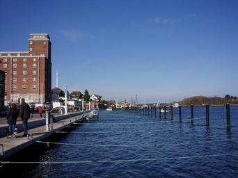 Keywords: Kappeln Schlei.jpg Schlei bei Kappeln Gebäude von 1936 own 2008 --Xocolatl 11 56 30 March 2008 UTC s o Kappeln Warehouses in Schleswig-Holstein
