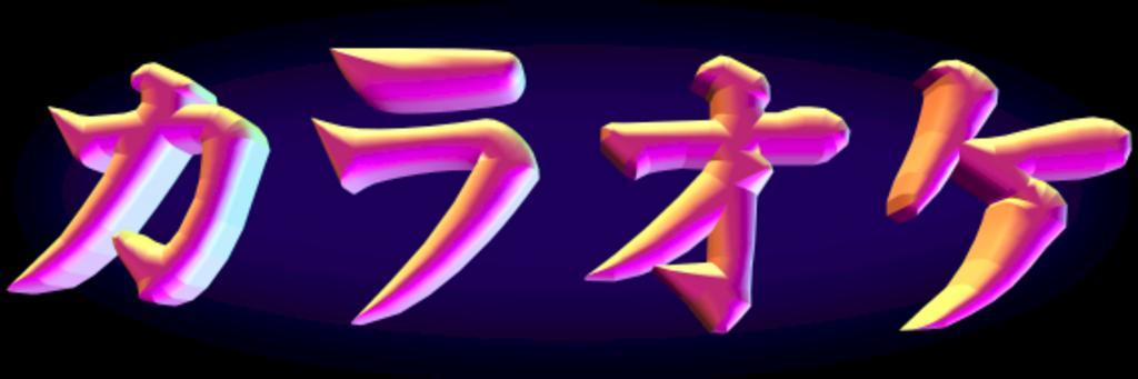 Keywords: Karaoke-kana-3D.png the word karaoke in Japanese katakana script; landscape format for the German Wiktionary Own work using the 8-bit Public-domain font Kata Kana in the 3D rendering programme COOL 3D by Ulead Systems Inc created 2006-06-04 Olaf Studt - Hämbörger Image Karaoke-kana png Katakana words |