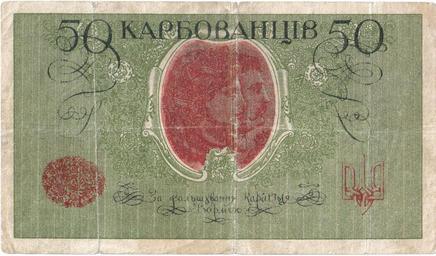 | Keywords: Karbovanets 50 1918 02.jpg This is back face To see front face go to Image Karbovanets 50 1918 01 jpg See Image Karbovanets 50 1918 01 jpg Ук аинские 50 ка бованцев 1918 года т н лебидь-ю чики отличавшиеся большим количеством подделок Реве с 1918 Это советский выпуск УССР для Гал евкома Галицийская Социалистическая Советская Республика лето 1920 либо подделка цвет банкноты не зелёно-жёлтый а синеватый; плохо п осмат иваются точки и запятые в вензелях <blockquote> В столовой стоял столовый стол кве ху ножками и пачка Лебидь-Ю чиков лежала на полу а ядом с ней пачка сегодня только п ивезенных Василисой со службы из Уп авления ижне-Днеп овскими шоссейными путями зелено-желтых бумажек </blockquote> <blockquote> Фальшування фальшування злобно заво чал он качая головой вот го е-то А Голубые глаза Василисы убойно опечалились В т етьем десятке аз В четве том десятке две в шестом две в девятом под яд т и бумажки несомненно таких за кото ые Лебiдь-Ю чик уг ожает тю ьмой Всего сто т инадцать бумажек и извольте видеть на восьми явные п изнаки фальшування И селянин какой-то м ачный а должен быть веселый и нет у снопа таинственных ве ных пе еве нутой запятой и двух точек и бумага лучше чем лебiдевская Василиса глядел на свет и Лебiдь явно фальшиво п освечивал с об атной сто оны Извозчику завт а вече ом одну азгова ивал сам с собой Василиса все авно ехать и конечно на база </blockquote> ихаил Булгаков «Белая гва дия» 1924 Own 1920 \ 2007-08-07 Oleh Kernytskyi PD-UA-exempt banknotes PD-old Banknotes of Ukraine 1918 0050 Days of the Turbins Banknotes with a face value of 50 Green banknotes |