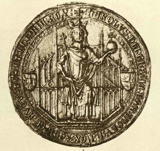Keywords: Karel4 majestat.jpg This is a scan of the historical document Title Die Siegel der deutschen Kaiser und Könige v 1 751 - 1347 scan from original book 1909 Otto Posse 1847-1921 Out of copyright as author died more than 70 years ago http //upload wikimedia org/wikipedia/commons/7/7c/Posse_Band_2_0001 jpg PD-old Charles IV Holy Roman Emperor Medieval seals Posse Die Siegel der deutschen Kaiser und Könige v 2 |