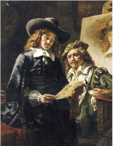 | Keywords: Karel Ooms - Rembrandt and his patron Jan Six.jpg Artwork Creator Karel Ooms 1877 Oil on canvas size cm 151 5 117 accession number object history credit line Signed Antwerp 1877 Auctioned by De Vuyst on 24 October 2015 lot 25 http //www de-vuyst com/en/auctions/catalogue/25/160_229_713 PD-old-100 DEFAULTSORT 1878 Genre paintings by Karel Ooms 19th-century genre paintings | ||||