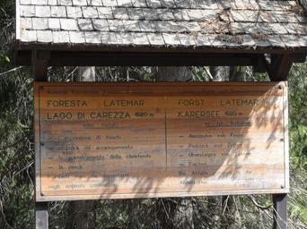 | Keywords: Karersee 6.jpg Gemeinde Welschnofen ital Nova Levante Bezirksgemeinschaft Salten-Schlern ” Provinz South Tyrol ” Region Trentino-Südtirol ital Trentino-Alto Adige ” Italy Forst Latemar/Karersee ” Schild mit Verhaltensmaßregeln own 2011-05-26 13 58 43 User Mattes Commonist 46 4103363889 11 5753983333 EXIF data regarding date and time may be inaccurate Bilingual signs in Trentino-South Tyrol Karersee Wooden signs Taken with Sony DSC-HX5VN Work by Mattes 2011 User Mattes/Contributions/Topics/banners coat of arms flags logos seals and signs User Mattes/Contributions/Topics/Italy |