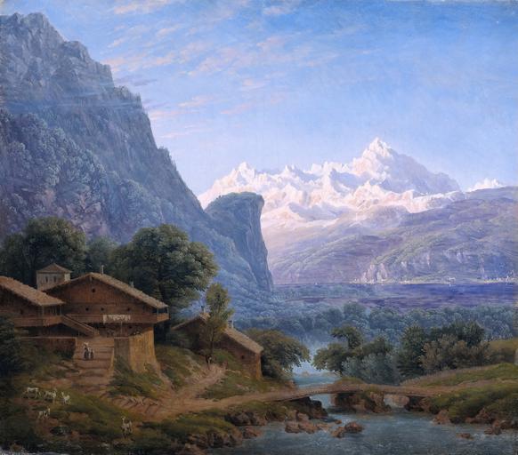 | Keywords: Karl Friedrich Schinkel - Blick auf den Mont Blanc (1813).jpg Artwork Creator Karl Friedrich Schinkel Blick auf den Mont Blanc View of Mont Blanc Вид на Ронблан Blick auf den Mont Blanc aus einem Hochgebirgstal mit Bauernhof im Vordergrund date 1813 oil on canvas cm 37 5 42 institution Alte Nationalgalerie accession number Inventar-Nr Schinkel-Museum C 1 NG 4/91 object history 1925 mit dem Schinkel-Museum übernommen; diesem 1844 von Peter Beuth übergeben der es 1814 von Schinkel als Geschenk erhielt exhibition history credit line Schinkel 1813 ~ ll signature / date 02531620 http //gallerix ru/storeroom/963981694/N/4803/ GalleriX PD-old-100-1923 DEFAULTSORT Schinkel; Landscape Mont Blanc; Alte Nationalgalerie Paintings by Karl Friedrich Schinkel in the Alte Nationalgalerie 19th-century paintings in the Alte Nationalgalerie Romantic paintings Paintings of Mont Blanc Landscape paintings of France 19th-century mountain paintings 1810s landscape paintings |