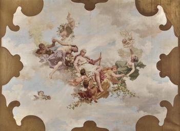 | Keywords: Karl Johann Peyfuss Flora und drei schwebende Genien.jpg Allegorie Entwurf für ein Deckengemälde oil on canvas ca 85 x 115 cm http //www dorotheum com Dorotheum ~ 1891 Creator Carl Johann Peyfuss PD-old-70-1923 Images from Dorotheum Carl Johann Peyfuss Paintings of Flora dea Schloss Büchsenhausen |