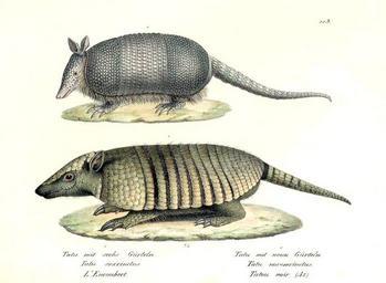 | Keywords: Karl Joseph Brodtmann13.jpg en Tatu sexcinctus Tatu novemcinctus Armadillos http //www theantiquarium com/catalog/index php cPath 31_163_164 Creator Karl Joseph Brodtmann ca 1824 Public domain PD-old-100 Karl Joseph Brodtmann Euphractus sexcinctus Dasypus novemcinctus 1824 in art |