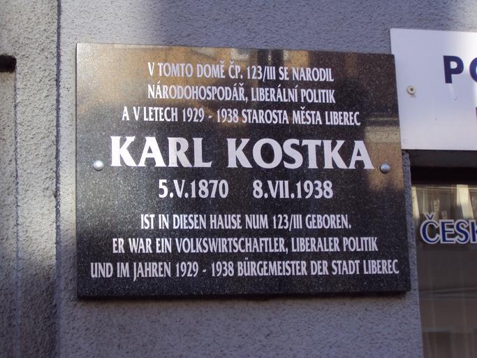 Keywords: Karl Kostka.jpg cs Mimoň III Mírová č p 123 pamětní deska Karl Kostka own Zákupák 2010-07-31 Mírová Mimoň Plaques in Mimoň German-Czech and Czech-German signs in the Czech Republic