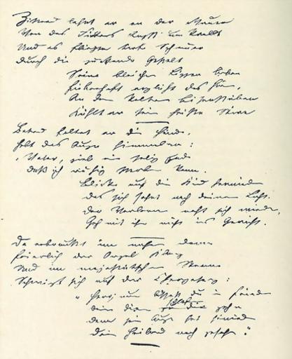 | Keywords: Karl May Gedicht Weihnachtsabend p2.jpg  Karl Mays Gedicht Weihnachtsabend entstand vermutlich während seiner Haft auf Schloss Osterstein <small><u>Weihnachtsabend </u><br /> <br /> žIch verkünde große Freude <br /> Die Euch widerfahren ist; <br /> Denn geboren wurde heute <br /> Euer Heiland Jesus Christ Jubelnd klingt es durch die Sphären <br /> Sonnen kündens jedem Stern <br /> Weihrauch duftet auf Altären <br /> Glocken klingen nah und fern Tageshell ists in den Räumen <br /> Alles athmet Lust und Glück <br /> Und an buntbehangnen Bäumen <br /> Hängt der freudetrunkne Blick Fast ists als ob sich die helle Nacht in Tag verwandeln will; Nur da oben in der Zelle Ists so dunkel ists so still Unten zieht des Festes Freude <br /> Jetzt in alle Herzen ein; <br /> Droben ist mit seinem Leide <br /> Seinem Grame er allein UDrunten wogt es durch die Gassen Lebensfrisch und lebensroth Droben kämpft mit leichenblassen Angesicht er mit dem Tod</small> Zitternd lehnt er an der Mauer <br /> Von des Fiebers Angst umkrallt <br /> Und es fliegen tiefe Schauer <br /> Durch die zuckende Gestalt Seine bleichen Lippen beben Fieberhaft erglüht das Hirn An den kalten Eisenstäben Kühlt er seine heiße Stirn Betend faltet er die Hände <br /> Hebt das Auge himmelan <br /> žVater gieb ein selig Ende <br /> Daß ich ruhig sterben kann Blicke auf Dein Kind hernieder Das sich sehnt nach Deinem Licht Der Verlorne naht sich wieder Geh mit ihm nicht ins Gericht Da erbraußt im nahen Dome <br /> Feierlich der Orgel Klang <br /> Und im majestätschen Strome <br /> Schwingt sich auf der Chorgesang žHerr nun lässest Du in Frieden Deinen Diener zu Dir schlafen gehn Denn sein Auge hat hienieden Deinen Heiland noch gesehn <small> Und der Priester legt die Hände <br /> Segnend auf des Todten Haupt <br /> žSelig ist wer bis ans Ende <br /> An die ewge Liebe glaubt Selig wer aus Herzensgrunde Nach der Lebensquelle strebt Und noch in der letzten Stunde Seinen Blick zum Himmel hebt Suchtest Du noch im Verscheiden <br /> Droben den Versöhnungsstern <br /> Wird er Dich zur Wahrheit leiten <br /> Und zur Herrlichkeit des Herrn Darum gilt auch Dir die Freude <br /> Die uns widerfahren ist; <br /> Denn geboren wurde heute <br /> Auch Dein Heiland Jesus Christ </small> http //karl-may-wiki de/index php/Weihnachtsabend_ 28Gedicht 29 between 1865 1868 Creator Karl May PD-old-100 <gallery> Karl May Gedicht Weihnachtsabend p1 jpg Part 1 Karl May Gedicht Weihnachtsabend p2 jpg Part 2 Karl May Gedicht Weihnachtsabend p3 jpg Part 3 </gallery> Manuscripts by Karl May Poems by Karl May |