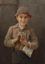 | Keywords: Karl Witkowski - Newsboy, 1899.jpg Artwork Creator Karl Witkowski 1899 oil canvas 20 x 14 in accession number object history credit line exhibition history K Witkowski/ 99 ~ upper left signature / date 1 http //americanartgallery org/artist/details/view/sshow/id/762 americanartgallery org<br/>2 christies online 5290873 2285 178 New York 4 March 2010 PD-old-auto-1923 1910 Karl Witkowski Paintings of boys 19th-century paintings from the United States Uploaded with UploadWizard Newsboys 1899 paintings |