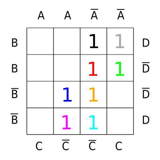 Keywords: Karnaugh map KV 4mal4 Gruppe01d.svg Karnaugh_map with 6 variables Own 2007-10 RosarioVanTulpe 4x4 Karnaugh maps