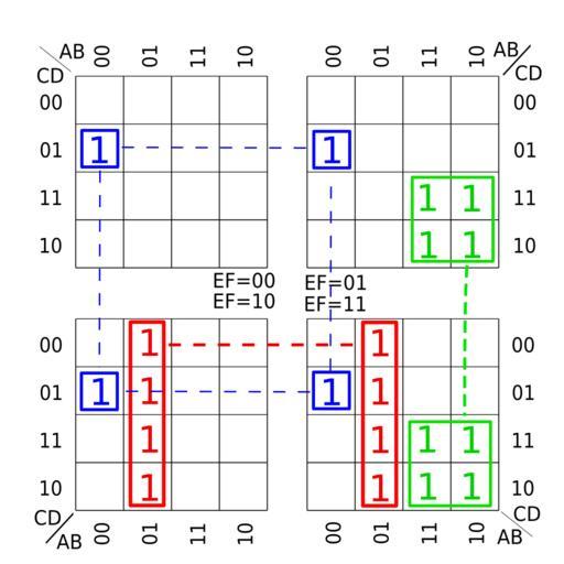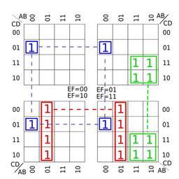 Keywords: Karnaugh map KV 4mal4mal4 01.svg Karnaugh_map with 6 variables Own 2007-10 RosarioVanTulpe 4x4 Karnaugh maps
