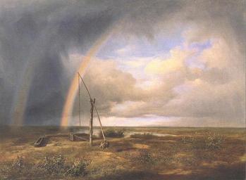 | Keywords: Károly Markó (I) - The Puszta - WGA14113.jpg Artwork Creator Károly Markó 1853 Oil on canvas size cm 39 5 52 Institution Hungarian national Gallery Budapest object history credit line accession number WGA link 14113 http //www wga hu/art/m/marko/father/10marko jpg http //www wga hu/html/m/marko/father/10marko html PD-old-100 painting landscape Hungarian 1801-1850 Paintings by Károly Markó in the Hungarian National Gallery 1853 paintings in Hungary WGA form painting WGA type landscape WGA School Hungarian WGA time period 1801-1850 Rainbows in paintings Puszta in art 19th-century oil on canvas paintings in Hungary Landscape paintings of Hungary Shadoofs in art 1850s landscape paintings |