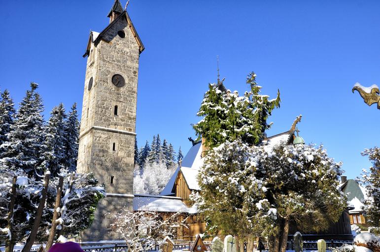 Keywords: karpacz temple wang temple wang architecture church monument cemetery krkonoše giant mountains vang winter mountains snow winter in the mountains
