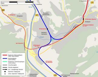 | Keywords: Karte Bahn Neckarelz.svg de Karte des Schienennetzes im Raum Mosbach mit Umgebung en railway map of Mosbach and surroundings self-made data taken from Eisenbahnatlas Deutschland Ausgabe 2005/2006 ISBN 3-89494-134-0 Die Eisenbahn im Kraichgau Eisenbahngeschichte zwischen Rhein und Neckar ISBN 3-8825-5769-9 http //www bahnseite de/DS100/DS100_T html Abkürzungen der Betriebsstellen and Topographic map TK50 2007-08-24 K Jähne PNG version Translation possible kjunix de Maps of Mosbach Rail transport maps of Baden-Württemberg Neckartalbahn Odenwaldexpress Bahnstrecke Neckarelz “Osterburken Bahnstrecke Meckesheim “Neckarelz |
