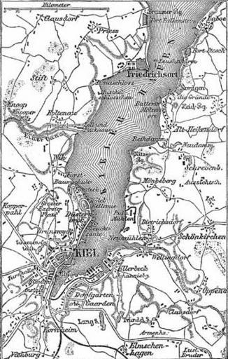 Keywords: Karte der Umgebung von Kiel.jpg Historical map of the surrounding area of Kiel Source Meyers Konversationslexikon 1888 Band 9 Seite 717 PD-Meyers Old maps of Schleswig-Holstein Old maps of Kiel Kiel 1888 in Kiel