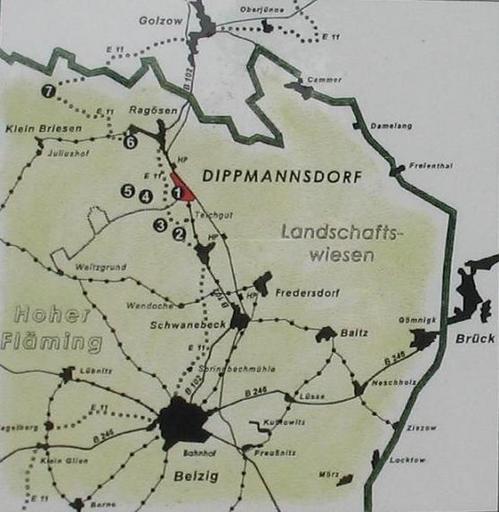 | Keywords: Karte Landschaftswiesen.JPG Dörfer im Umkreis der Belziger Landschaftswiesen Brandenburg Hinweise Das Dorf Trebitz ist nicht als Name eingezeichnet es ist auf der Karte der nördliche Teil von Gömnigk die Dörfer liegen unmittelbar nebeneinander Für das Dorf zwischen Fredersdorf und Dippmannsdorf fehlt die Namensangabe Lütte Die Hervorhebung von žDippmannsdorf Nr 1 hat hier keinen Stellenwert und ist der Position der Informationstafel vor Ort geschuldet Die Nummern bezeichnen örtliche Wanderwege Die fette Linie stellt die nordöstliche Grenze des Naturparks Hoher Fläming dar Villages around the Belziger Landschaftswiesen Brandenburg Germany Foto Ausschnitt einer offiziellen Informationstafel der Naturparkverwaltung Hoher Fläming am Dippmansdorfer Paradies 15 May 2006 Date of the picture map Naturparkverwaltung Hoher Fläming<br/> photo Lienhard Schulz taken the picture FoP-Germany Maps of Brandenburg Lütte |