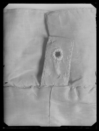 | Keywords: Kasack av scharlakansrött kläde som tillhört Karl X Gustav (1622-1660) - Livrustkammaren - 53948.tif LSH artwork sv I 1671 års inv upptas tre plagg kasack tröja och byxor Kasacken och byxorna är sydda av scharlakansrött kläde Tröjan av silverbrokad Kasacken är liksom nr 3407 skuren i ett helt bakstycke som sneddats ut åt sidorna och rundats nertill och mitt bak klippts upp så att ett 34 cm långt sprund erhållits De 2 framstyckena är raka framtill och har likaledes sneddats ut i sidorna De är 94 5 cm långa från axelsömmens högsta punkt Sidosömmarna är hopsydda Framstyckena har inga ökningar sånär som på synnerligen minimala triangulära kilar längst ut i sidorna nedtill Bakstyckethar ca 40 cm från nederkanten i sidsömmarna en triangulär kil 7 cm hög på båda sidorna Kasacken är lik den föregående fast den gjorts mindre vid även vad beträffar ärmarna som dock avviker genom sin helt öppna slits Ärmarna består av 2 större stycken De är längs hela framsidan öppna ända från axeln utefter kanten har små remsor skarvats på det övre stycket Klädet 23x20 tr/cm2 har en vådbredd av minst 95 eller 135 5 cm beroende av på vilken led av tyget bakstycket är skuret Styckena har sytts ihop så att de långa sömmarna i sidorna kastats samman med rosafärgat 2-trådigt högertvinnat silke 3 á 4 stygn/cm från avigan De små skarvarna har man tydligen bemödat sig om att göra eleganta och så osynliga som möjligt Ytterkanterna är ej infållade utan endast klippta och man har sytt fast fodret med tråckelstygn sedan dess ytterkanter vikts in Kring halslinningen är en liten slå av dubbelvikt kläde som på utsidan är 1 cm hög Fodret utgörs av cinnoiberröd nu starkt blekt moiré Vådbredden är 104 cm utan stad 64x37 tr/cm2 Stad 0 9 cm 10 vita 10 röda 15 gröna 1 röd tråd tuskaft Då icke heller fodret har någon skarv i ryggstycket så när som på hörnskarvarna i sidorna har man här utnyttjat tygets stora bredd Mitt i ryggen syns vecket från tygets moirébehandling vattring Kasacken är nu berövad all sin garnering Blott rester av trådar och stygn samt rader av hål antyda att plagget varit garnerat med knappar och spetsar Man omnämner i 1675 års Klädkammarräkning att silverspetsar sprättats bort för att begagnas i samband med Karl XI s kröning Sålunda har höger framstycke 2 5 cm från kanten små hål efter 37 knappar och ärmarnas öppna bakstycken visar att 31 knappar här suttit på samma 2 5 cm avstånd från kanten Likaledes har sprundet bak på högra skörtet hål efter 15 knappar Inga knappar har sytts genom fodret Plagget har ej varit mellanfodrat men papper ligger ännu kvar runt de flesta sömmar för att ge styrsel vid spetsarnas fastsättande Kasacken är malskadad Man kan på dylika ställen med relativ lätthet räkna trådarna/cm2 och konstatera att klädet vävts av ofärgat ullgarn som sedan ryggats och färgats ty de malätna partierna är ljusa I halsen är kaplitzen d v s bandet delvis bevarat Det består av ett dubbelvikt 1 7 cm brett rosafärgat ripsband 22 inlsagstr/cm original caption 1647 silk Färg cinnoiberröd d2 - dräkt - foder material siden - broadcloth Färg scharlakansröd d1 - dräkt - yttermaterial material kläde LRK Karl X Gustav av Sverige Modelejon 2002 place of origin original filename LN_E04612 68489 inventory number LRK 31928 53948 CC0 Kasack av scharlakansrött kläde som tillhört Karl X Gustav 1622-1660 - Livrustkammaren - 53948-negative tif <gallery caption Different images of same object > File Kasack av scharlakansrött kläde som tillhört Karl X Gustav 1622-1660 - Livrustkammaren - 45387 tif File Kasack av scharlakansrött kläde som tillhört Karl X Gustav 1622-1660 - Livrustkammaren - 62509 tif File Kasack av scharlakansrött kläde som tillhört Karl X Gustav 1622-1660 - Livrustkammaren - 28268 tif File Kasack av scharlakansrött kläde som tillhört Karl X Gustav 1622-1660 - Livrustkammaren - 19706 tif File Kasack av scharlakansrött kläde som tillhört Karl X Gustav 1622-1660 - Livrustkammaren - 1609 tif File Röd dräkt som tillhört Karl X Gustav från 1647 - Livrustkammaren - 48035 tif File Kasack av scharlakansrött kläde som tillhört Karl X Gustav 1622-1660 - Livrustkammaren - 45345 tif File Kasack av scharlakansrött kläde som tillhört Karl X Gustav 1622-1660 - Livrustkammaren - 53906 tif </gallery> Tops clothing Media contributed by LSH 2016-12 |