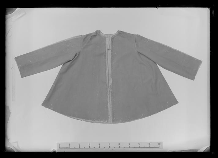 | Keywords: Kasack av scharlakansrött kläde som tillhört Karl X Gustav (1622-1660) - Livrustkammaren - 1609.tif I 1671 års inv upptas tre plagg kasack tröja och byxor Kasacken och byxorna är sydda av scharlakansrött kläde Tröjan av silverbrokad <br/><br/>Kasacken är liksom nr 3407 skuren i ett helt bakstycke som sneddats ut åt sidorna och rundats nertill och mitt bak klippts upp så att ett 34 cm långt sprund erhållits De 2 framstyckena är raka framtill och har likaledes sneddats ut i sidorna De är 94 5 cm långa från axelsömmens högsta punkt Sidosömmarna är hopsydda Framstyckena har inga ökningar sånär som på synnerligen minimala triangulära kilar längst ut i sidorna nedtill Bakstycket<br/>har ca 40 cm från nederkanten i sidsömmarna en triangulär kil 7 cm hög på båda sidorna Kasacken är lik den föregående fast den gjorts mindre vid även vad beträffar ärmarna som dock avviker genom sin helt öppna slits Ärmarna består av 2 större stycken De är längs hela framsidan öppna ända från axeln utefter kanten har små remsor skarvats på det övre stycket Klädet 23x20 tr/cm2 har en vådbredd av minst 95 eller 135 5 cm beroende av på vilken led av tyget bakstycket är skuret Styckena har sytts ihop så att de långa sömmarna i sidorna kastats samman med rosafärgat 2-trådigt högertvinnat silke 3 á 4 stygn/cm från avigan De små skarvarna har man tydligen bemödat sig om att göra eleganta och så osynliga som möjligt Ytterkanterna är ej infållade utan endast klippta och man har sytt fast fodret med tråckelstygn sedan dess ytterkanter vikts in Kring halslinningen är en liten slå av dubbelvikt kläde som på utsidan är 1 cm hög Fodret utgörs av cinnoiberröd nu starkt blekt moiré Vådbredden är 104 cm utan stad 64x37 tr/cm2 Stad 0 9 cm 10 vita 10 röda 15 gröna 1 röd tråd tuskaft Då icke heller fodret har någon skarv i ryggstycket så när som på hörnskarvarna i sidorna har man här utnyttjat tygets stora bredd Mitt i ryggen syns vecket från tygets moirébehandling vattring Kasacken är nu berövad all sin garnering Blott rester av trådar och stygn samt rader av hål antyda att plagget varit garnerat med knappar och spetsar <br/><br/>Man omnämner i 1675 års Klädkammarräkning att silverspetsar sprättats bort för att begagnas i samband med Karl XI s kröning Sålunda har höger framstycke 2 5 cm från kanten små hål efter 37 knappar och ärmarnas öppna bakstycken visar att 31 knappar här suttit på samma 2 5 cm avstånd från kanten Likaledes har sprundet bak på högra skörtet hål efter 15 knappar Inga knappar har sytts genom fodret Plagget har ej varit mellanfodrat men papper ligger ännu kvar runt de flesta sömmar för att ge styrsel vid spetsarnas fastsättande Kasacken är malskadad Man kan på dylika ställen med relativ lätthet räkna trådarna/cm2 och konstatera att klädet vävts av ofärgat ullgarn som sedan ryggats och färgats ty de malätna partierna är ljusa I halsen är kaplitzen d v s bandet delvis bevarat Det består av ett dubbelvikt 1 7 cm brett rosafärgat ripsband 22 inlsagstr/cm original caption 1647 silk Färg cinnoiberröd d2 - dräkt - foder material siden - broadcloth Färg scharlakansröd d1 - dräkt - yttermaterial material kläde LRK Karl X Gustav av Sverige Modelejon 2002 place of origin original filename LN_B13220_016100 68489 inventory number LRK 31928 1609 CC0 Kasack av scharlakansrött kläde som tillhört Karl X Gustav 1622-1660 - Livrustkammaren - 1609-negative tif Tops clothing Clothing in Livrustkammaren Media contributed by LSH 2013-10 |