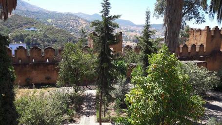 Keywords: kasbah landscape mountain arabesque archer tower casbah chaouen garden orange tree