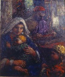 | Keywords: 'Kashmir Family' by Charles W. Bartlett, c. 1935, oil on canvas.JPG Artwork creator Charles W Bartlett ca 1935 oil on canvas 30 5/8 x 24 5/8 inches Frazier Fine Art PD-old-auto 1940 Oil paintings by Charles W Bartlett Oil portraits Paintings of mothers with sleeping children Portraits of mother and child Women at work in Kashmir 20th-century oil paintings of people | ||||