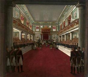 | Keywords: Kasprzycki Coronation of Alexandra Feodorovna.jpg Artwork Creator Antoni Brodowski 1829 oil canvas cm 161 193 Institution National Museum Warsaw Not on view accession number 32711 object history ProvenanceEvent deposit National Museum in Warsaw Temler Ludwik credit line Coronation ceremony in the New Senate Chamber at the Royal Castle in Warsaw On May 24th 1829 the Tsar Nicholas I of Russia crowned himself and his wife as King and Queen of Poland http //cyfrowe mnw art pl/dmuseion/docmetadata id 15924 cyfrowe mnw art pl See below <gallery>Coronation of Alexandra Feodorovna by Nicolas I of Russia in the Castle of Warsaw in 1829 PNG</gallery> PD-old-100 DEFAULTSORT 1829; Coronation of Alexandra Feodorovna Paintings by Antoni Brodowski in the National Museum in Warsaw Alexandra Feodorovna Charlotte of Prussia Coronations in Poland Royal Castle Warsaw in the 19th century Senate Chamber Royal Castle Warsaw Nicholas I of Russia in documentary paintings Coronations in Russia |