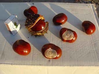 Keywords: Kaštany 2.jpg Fruit of chestnut Aesculus hippocastanum Autumn 2005 Czech republic plody kaštanu Jaroměř východní Čechy Author Karelj 2006-05-15 own assumed Karelj Aesculus hippocastanum fruit