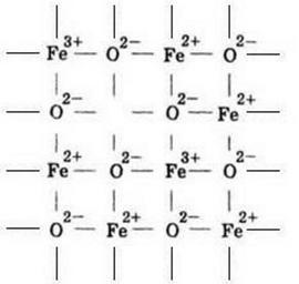 Keywords: Kat dfct in FeO crstl.jpg en Kation defect in Ferum Oxide crystal uk Катіонний дефект у к исталі Оксиду Фе уму II own Mung Daal 2013-10-08 Crystals Oxides Iron compounds Schemas Cc-zero