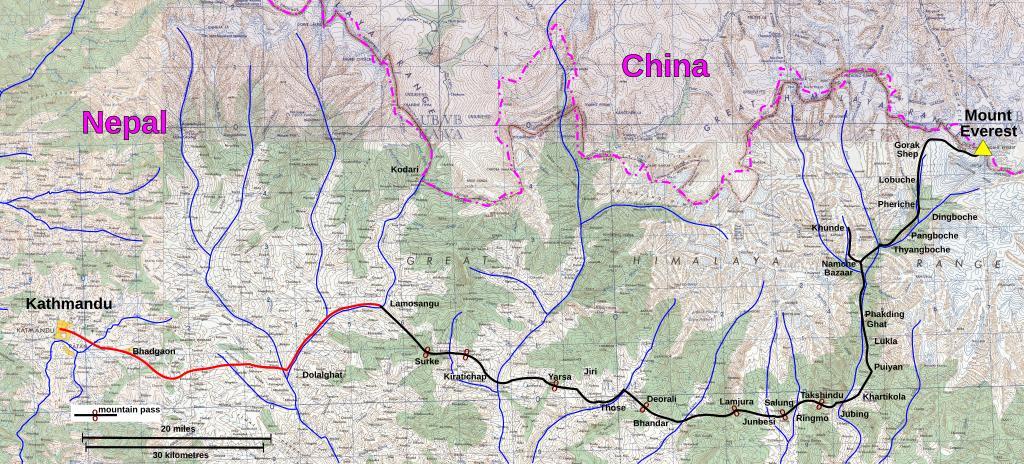 | Keywords: Kathmandu to Mount Everest approach march, Bonington 1975.svg 1975 British Mount Everest Southwest Face expedition The base map shows the then indeterminate border so the annotation shows the contemporary border from the Times Atlas/ Google Maps 1955 http //www lib utexas edu/maps/ams/india/ng-45-02 jpg http //www lib utexas edu/maps/ams/india/ng-45-01 jpg http //www lib utexas edu/maps/ams/india/nh-45-13 jpg http //www lib utexas edu/maps/ams/china/txu-oclc-10552568-nh45-14 jpg U S Army Map Service Base maps PD-USGov annotation cc-by-3 0 File Map India and Pakistan 1-250 000 Tile NG 45-2 Mount Everest jpg File Map India and Pakistan 1-250 000 Tile NG 45-1 Katmandu jpg File Map India and Pakistan 1-250 000 Tile NH 45-13 Jongkha Dzong jpg File Map China 1-250 000 Tile NH 45-14 Tingri Dzong jpg Uploaded with UploadWizard Maps of Mount Everest |