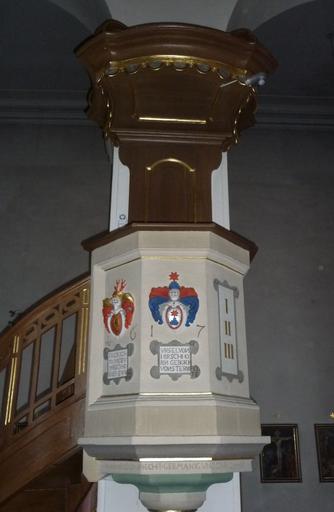 Keywords: Katholische Kirche Mudau 08.JPG en St Pankratius Mudau own Immanuel Giel 2010-04 Interior of St Pankratius Mudau Pulpits in Neckar-Odenwald-Kreis
