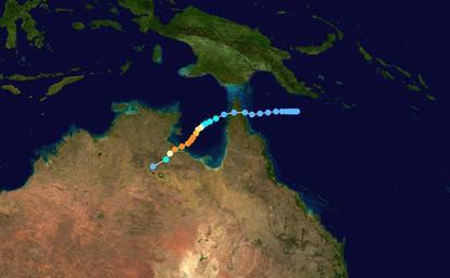 | Keywords: Kathy 1984 track.png Track map of Severe Tropical Cyclone Kathy of the 1983-84 Australian region cyclone season The points show the location of the storm at 6-hour intervals The colour represents the storm's maximum sustained wind speeds as classified in the Saffir-Simpson Hurricane Scale see below and the shape of the data points represent the nature of the storm according to the legend below clear User Nilfanion/Tc/T Created by Iune using Wikipedia WikiProject Tropical cyclones/Tracks The background image is from NASA Tracking data is from the JTWC 2011-01-30 Iune 1983-84 Australian region cyclone season |